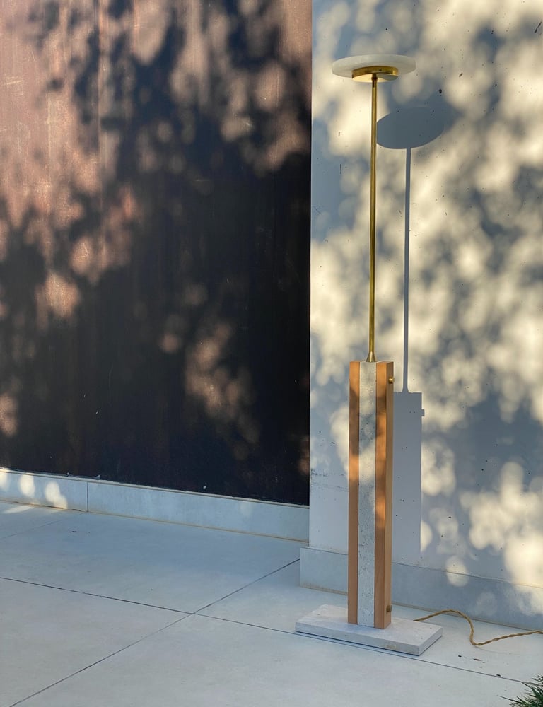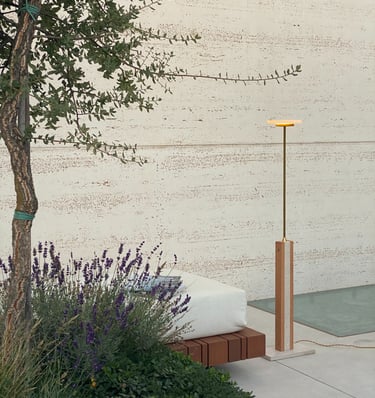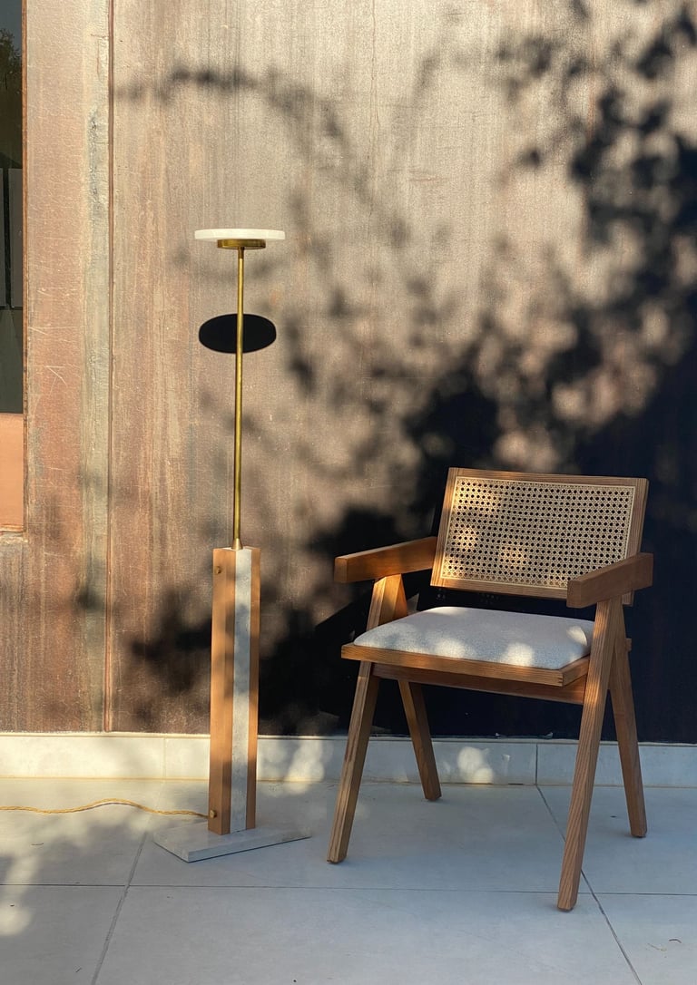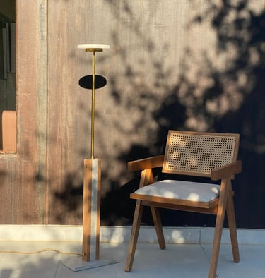 El alabastro, protagonista de la pieza, filtra una luz suave y cálida que envuelve el espacio con delicadeza.