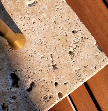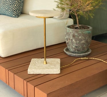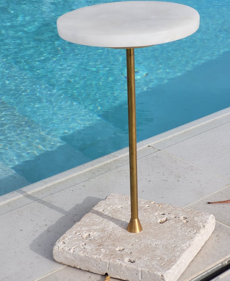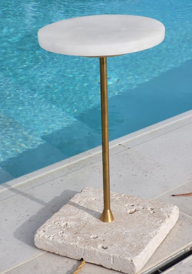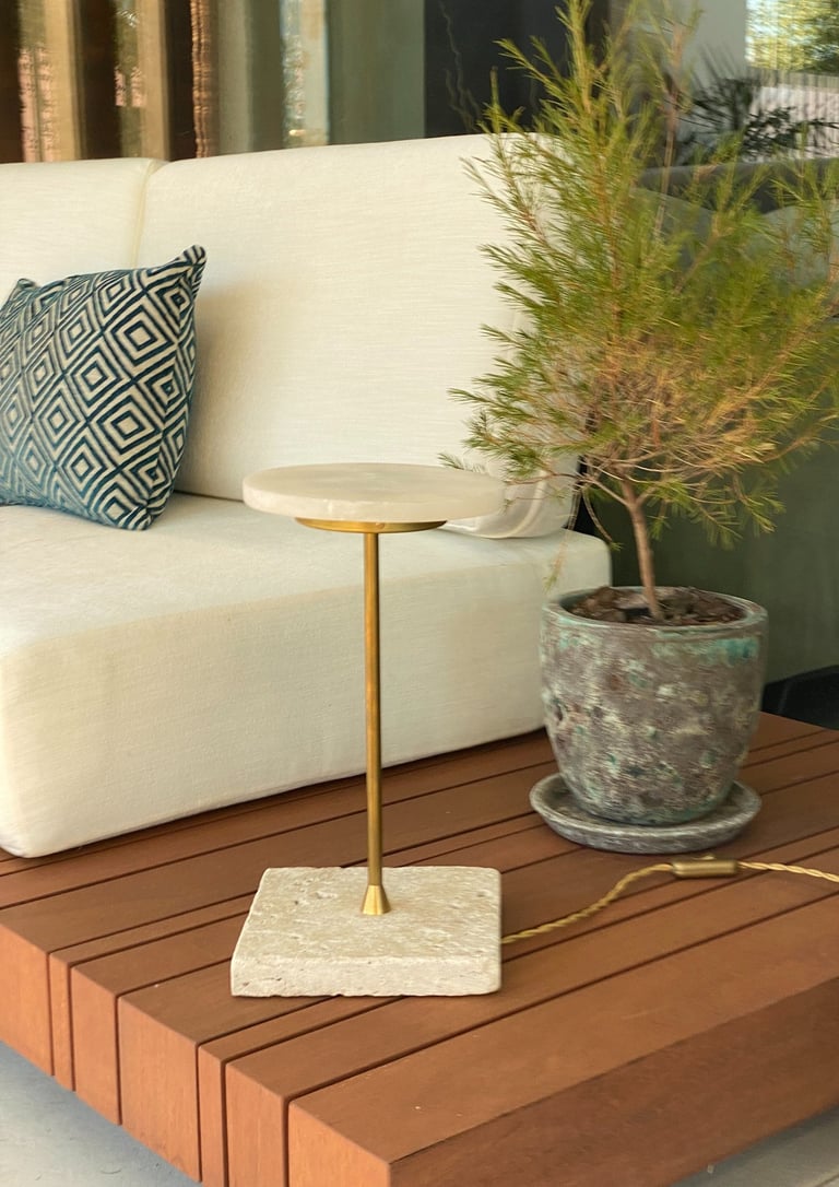 Pieza de sobremesa que combina la ligereza visual del alabastro con la solidez del mármol.