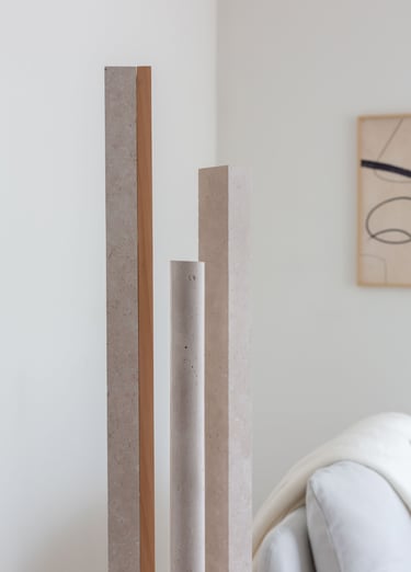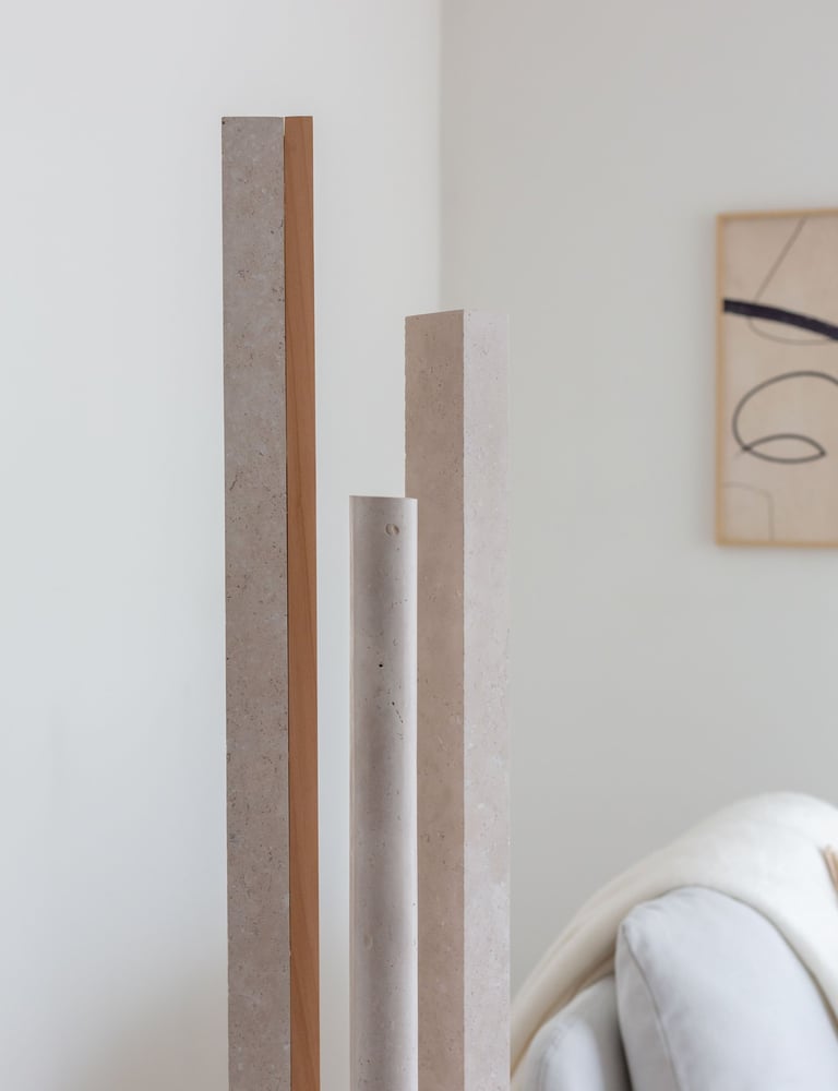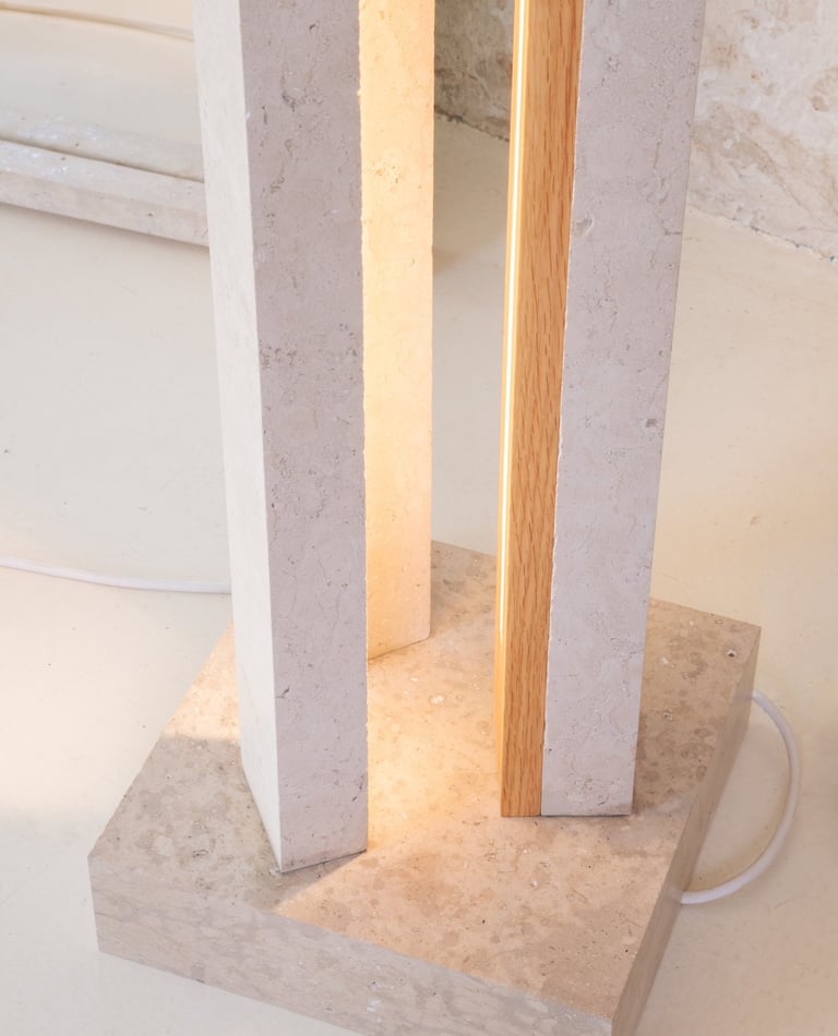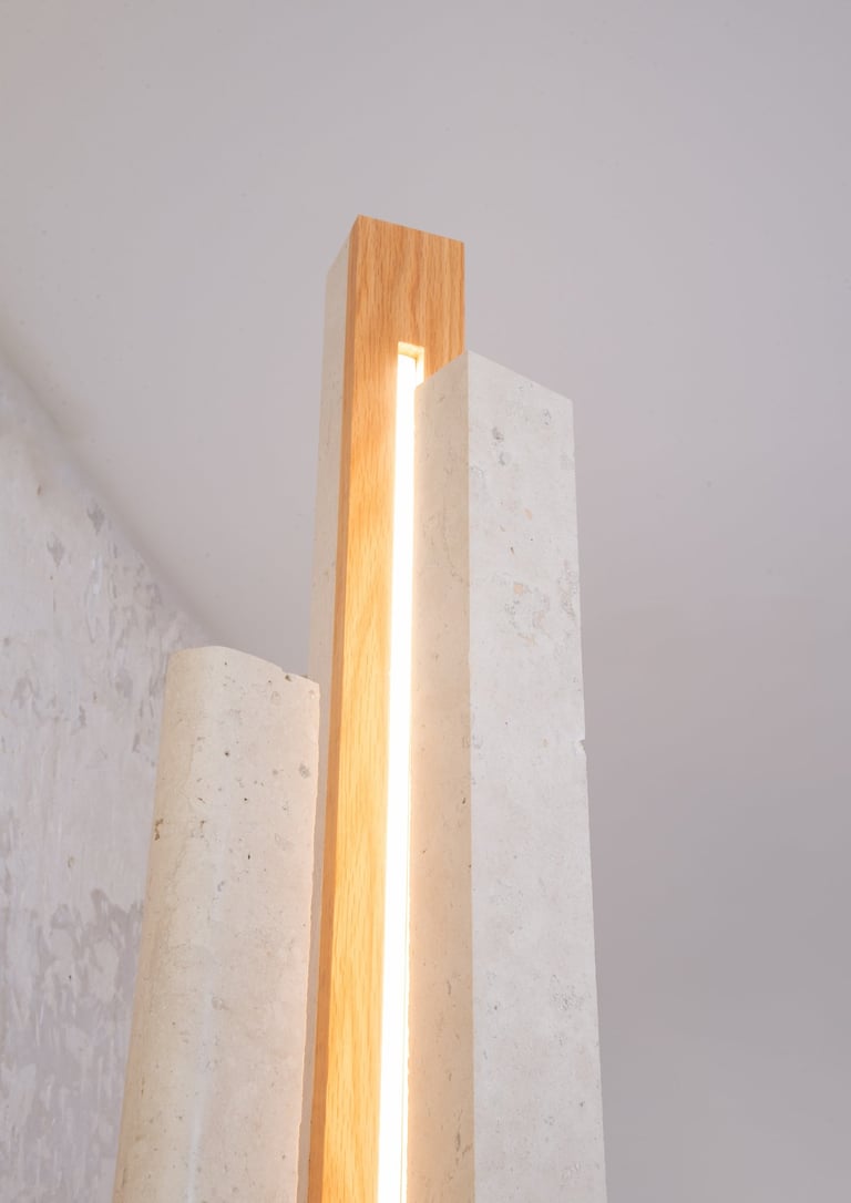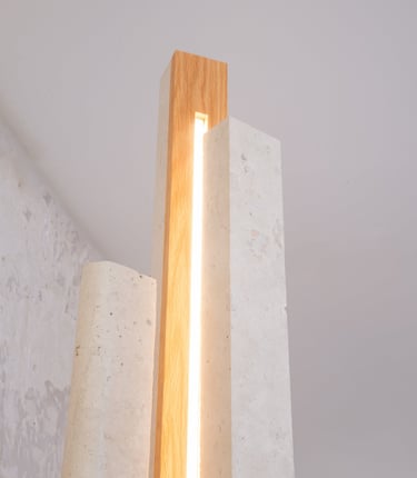 Town evoca el skyline de una gran manzana: sobria, modular, urbana. La luz se proyecta hacia un único lateral de piedra, creando un juego de sombras elegante y direccional. Escultura en estado puro, donde la materia y el diseño se ponen al servicio del espacio.